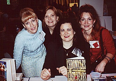 I wanted to share with you a couple of photos that were sent to me this week. Kristin Moum has been one of my room mates at the Romantic Times convention for two years now, and she sent me a copy of two photos she had taken at the Houston convention last November. The first one is a picture of all four of us room mates -- Cynthia, Kristin, me and Kimberly -- at the bookfair, where I signed my life away to everyone who bought one of my books. (It was fun!). And the second one is me by myself, trying to look ever-so-professional and writerly-like. <grin>